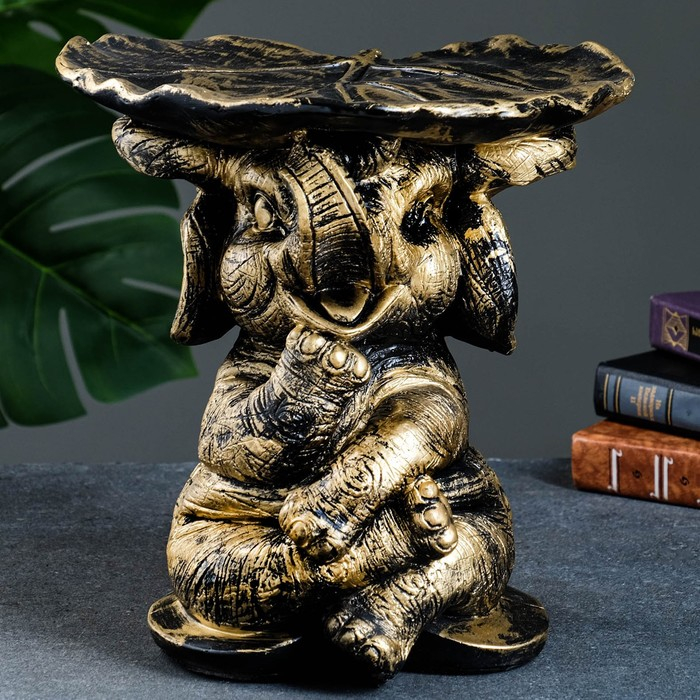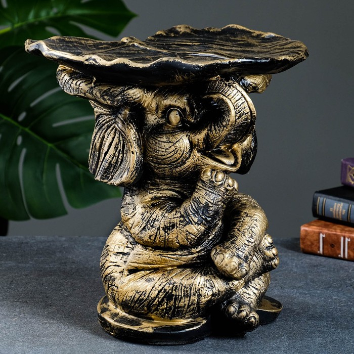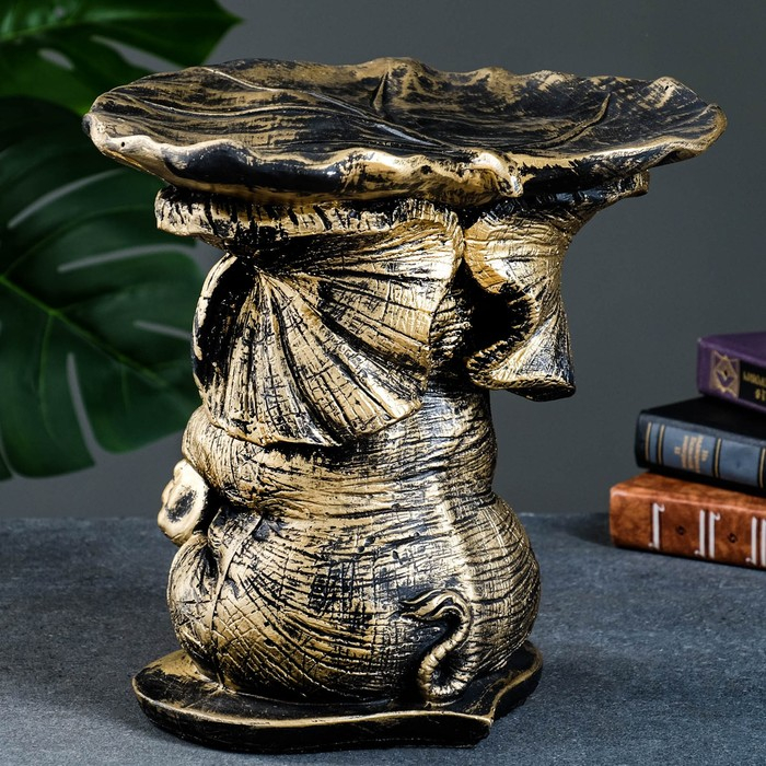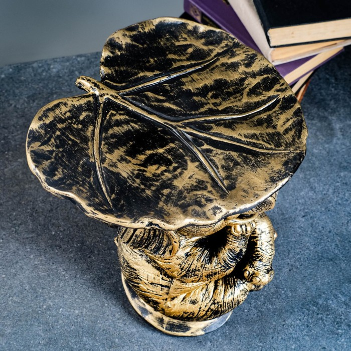 Фигура - подставка "Слон с листком" бронза/золото, 30х30х30см