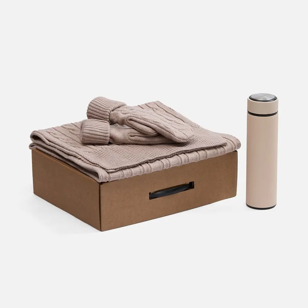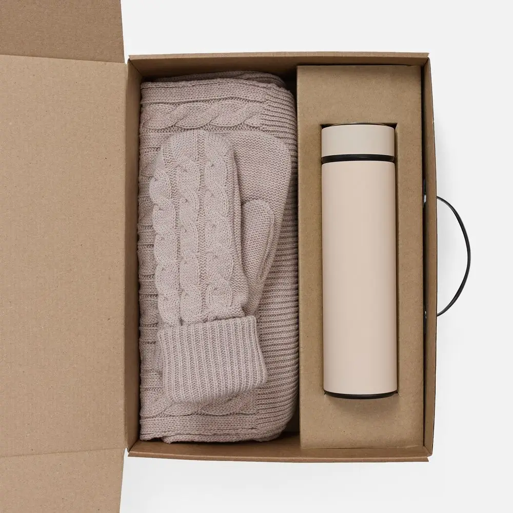 шарф, варежки - акрил 100%; термос - нержавеющая сталь, 304; покрытие софт-тач; коробка - микрогофрокартон