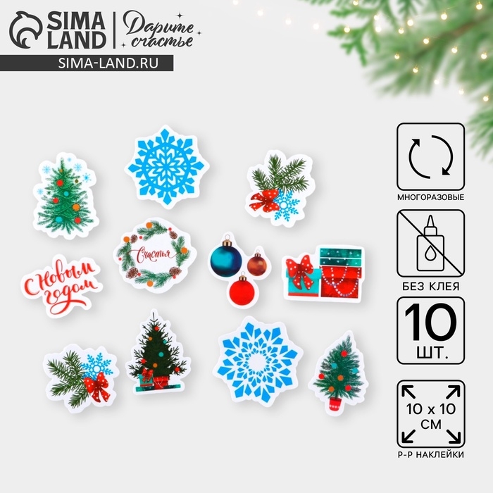 Наклейки новогодние на окна «Новый Год», многоразовые, 10 х 10 см, Новый год