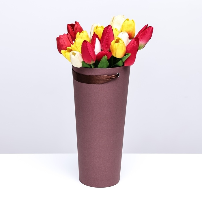 Переноска конус под цветы, шоколад 10 х 14 х 30 см