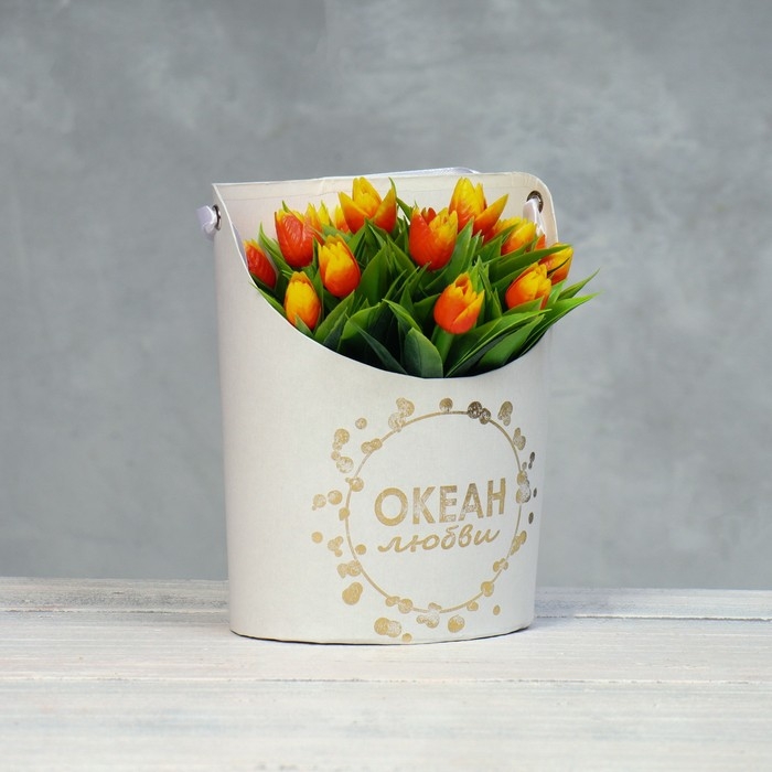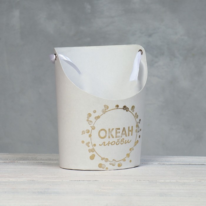 Переноска для цветов, ваза Овал с тиснением "Океан любви", белая 12,5 х 13,5 х 18 см