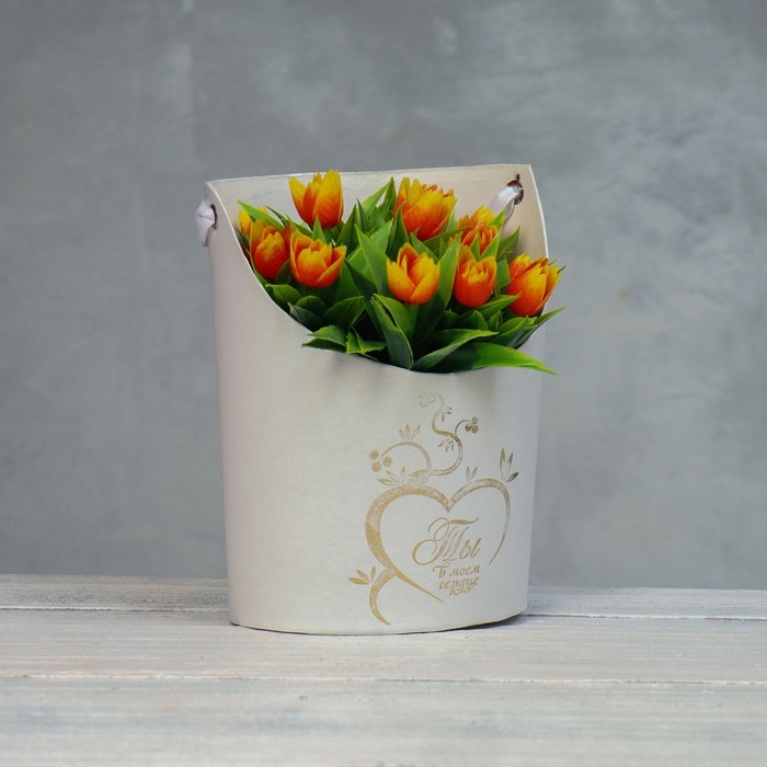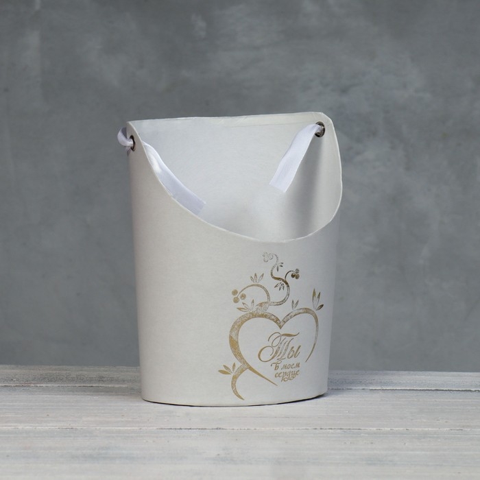 Переноска для цветов, ваза Овал с тиснением "Ты в моём сердце", белая 12,5 х 13,5 х 18 см
