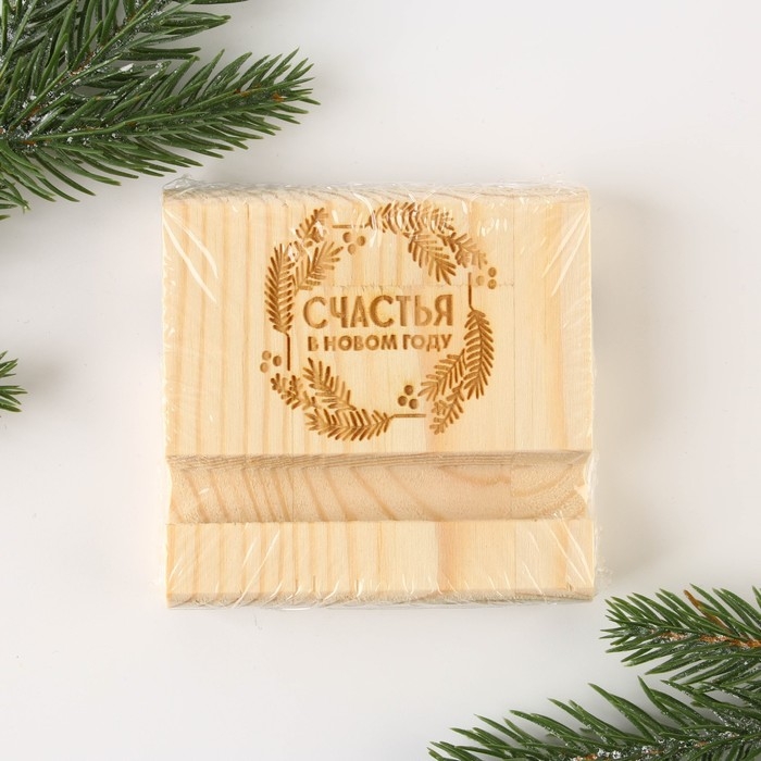 Подставка для телефона новогодний сувенир «Новый год: Счастья», 8 х 8 х 1,5 см.