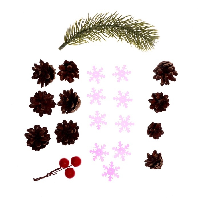 - Сделайте букет из еловых веток и декорируйте его элементами из набора.