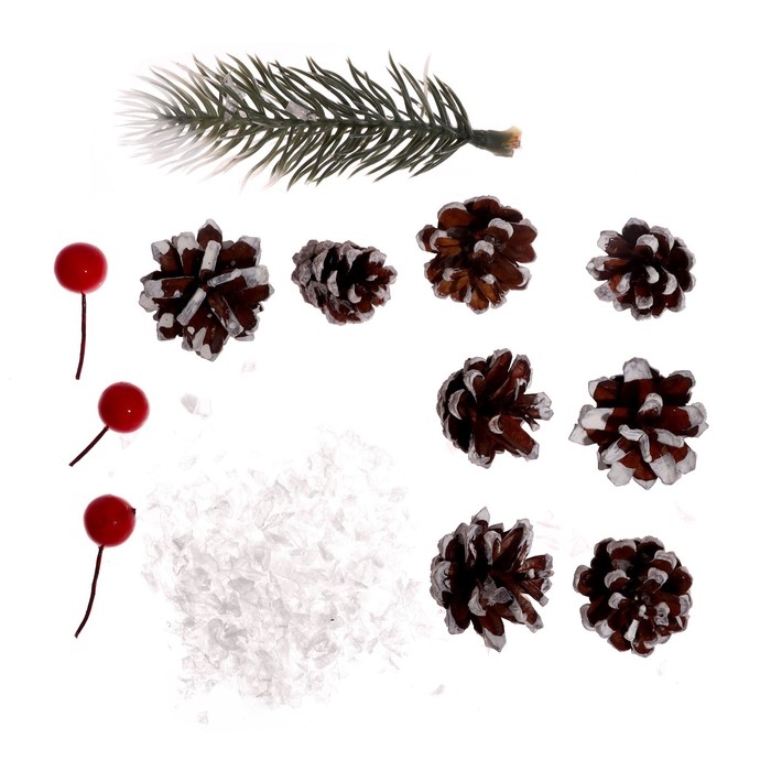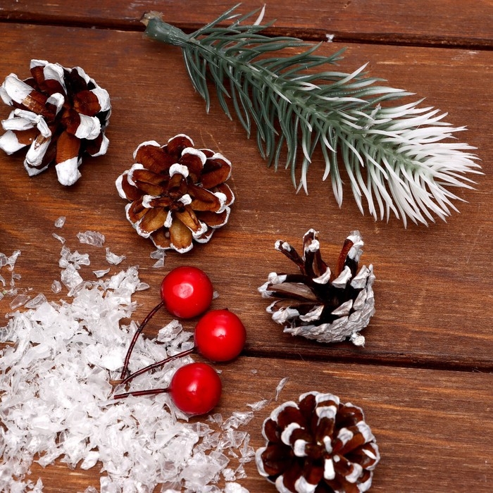 Новогодняя композиция «Веточки с рябиной и шишками» 12 × 12 × 18 см