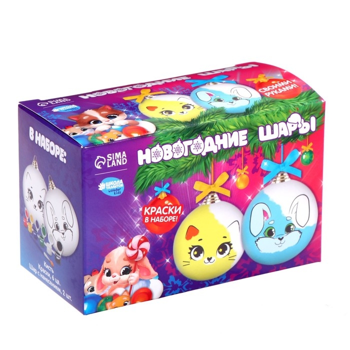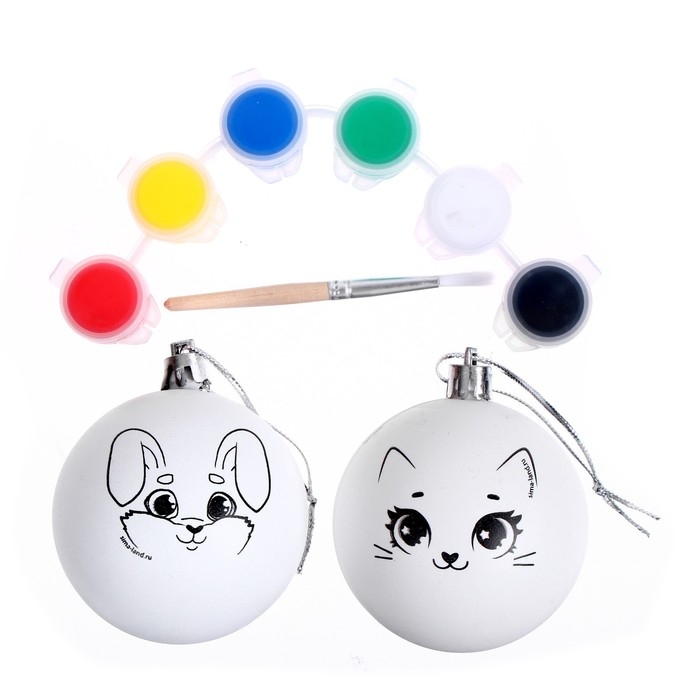 Ёлочные шары под раскраску на новый год «Новый год», 2 шт, краски, новогодний набор для творчества
