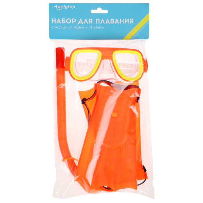 Набор для плавания детский ONLYTOP: маска, трубка, ласты безразмерные, цвета МИКС