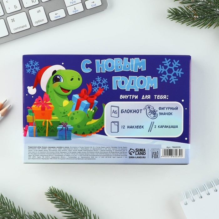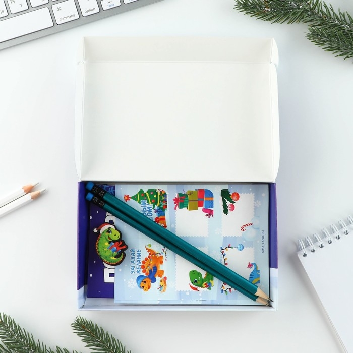 Подарочный набор новогодний «Волшебный набор»: блокнот, карандаши, наклейки и значок
