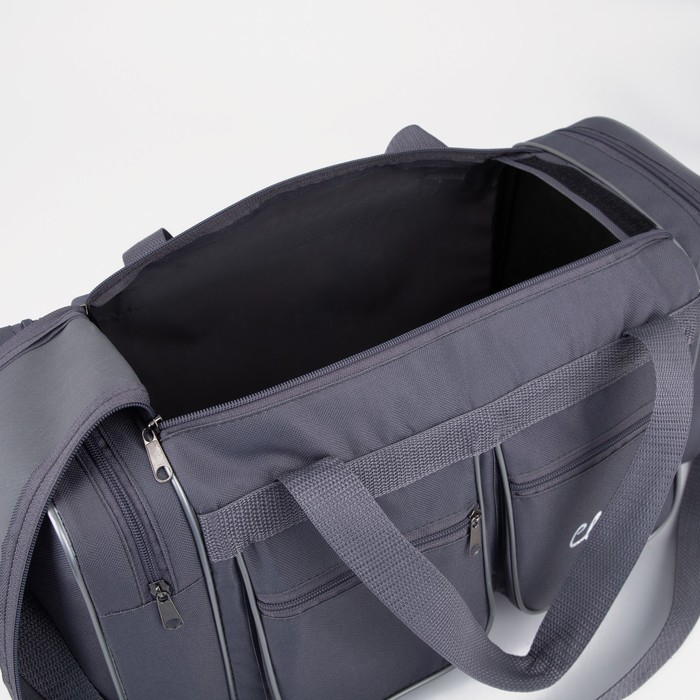 Сумка спортивная на молнии, 4 наружных кармана, длинный ремень, средний размер, цвет серый