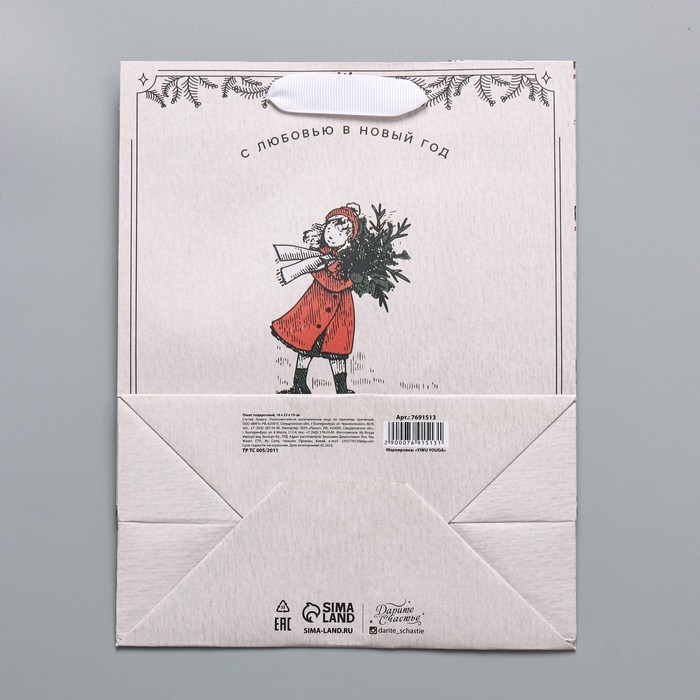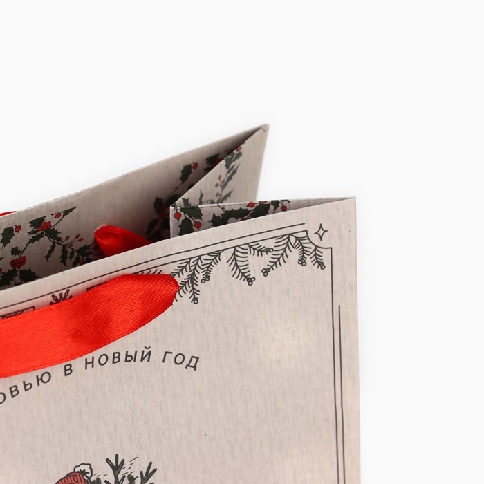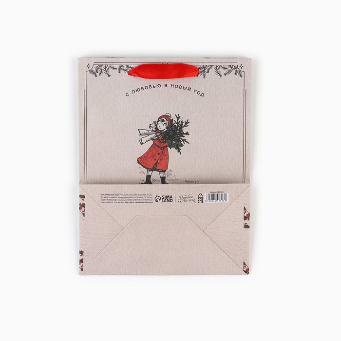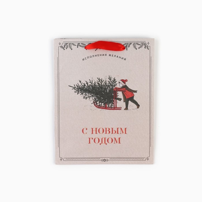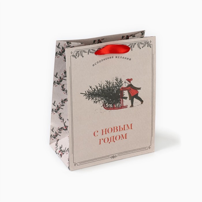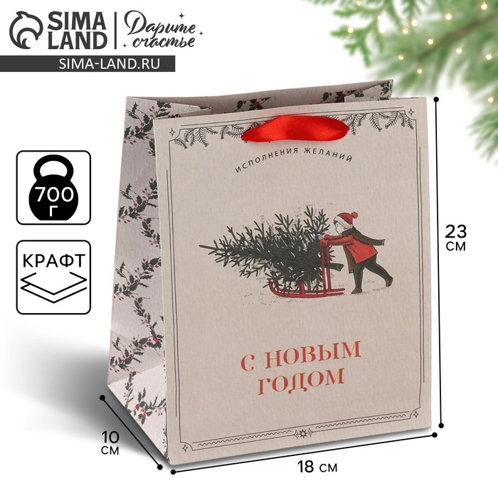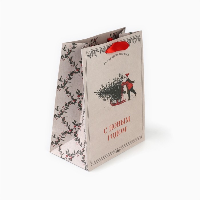 Пакет подарочный новогодний крафтовый вертикальный «Будьте счастливы», MS 18 х 23 х 10 см, Новый год