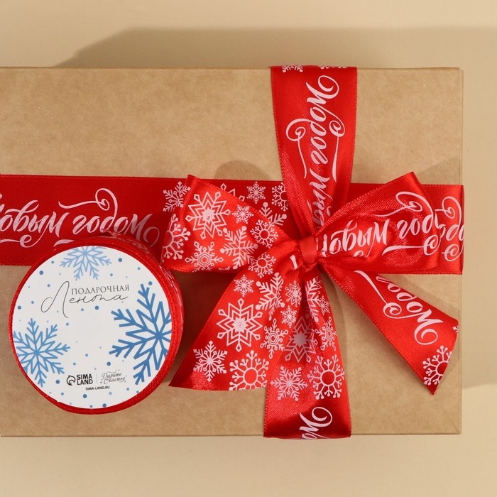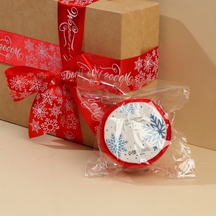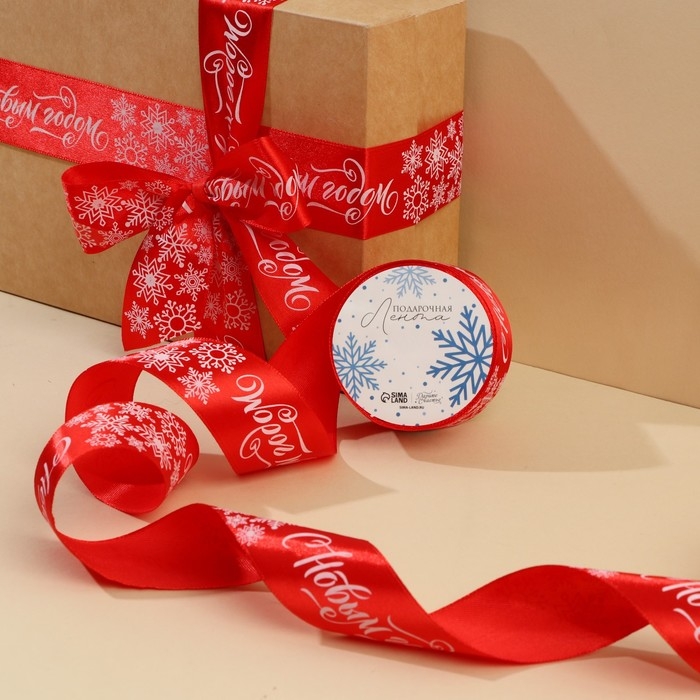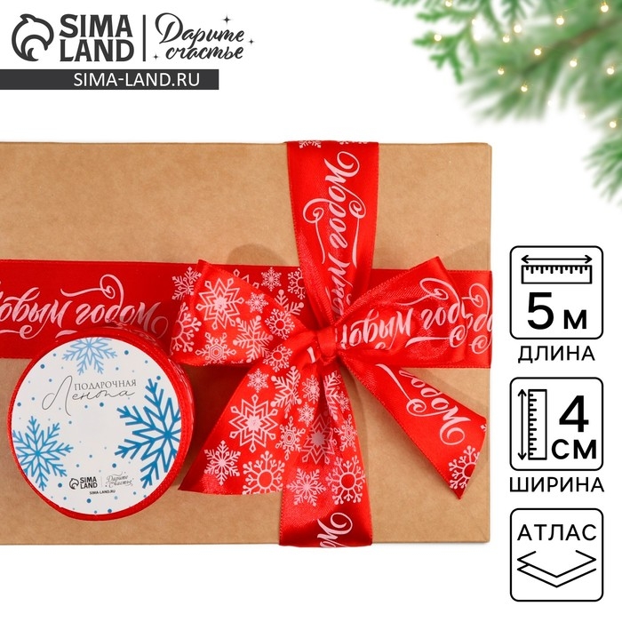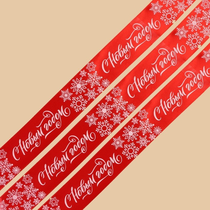 Лента атласная «С Новым годом», красная, 4 см × 5 метров