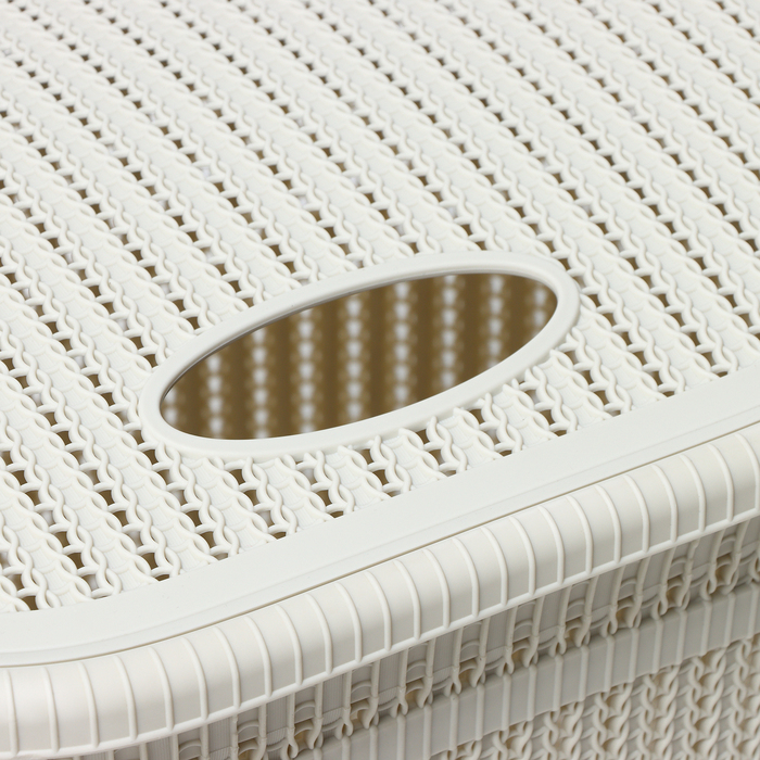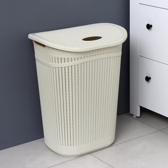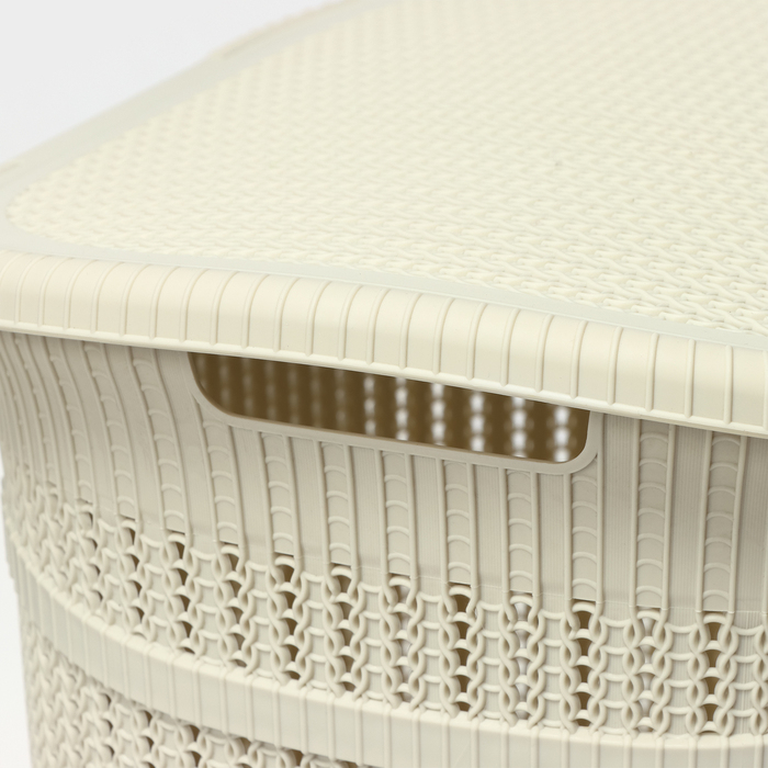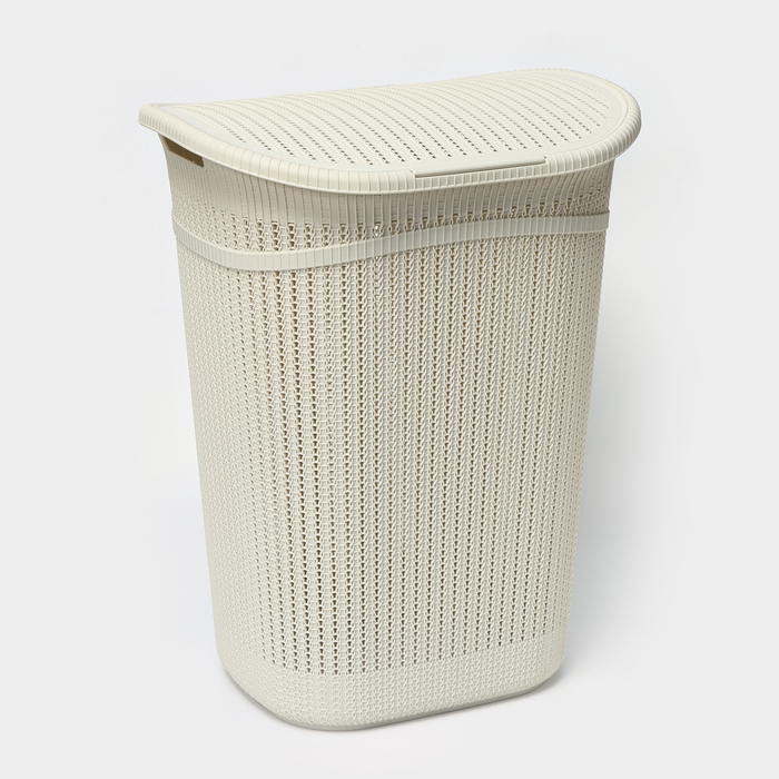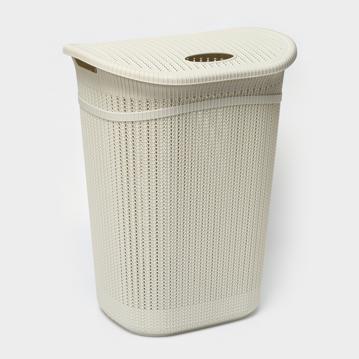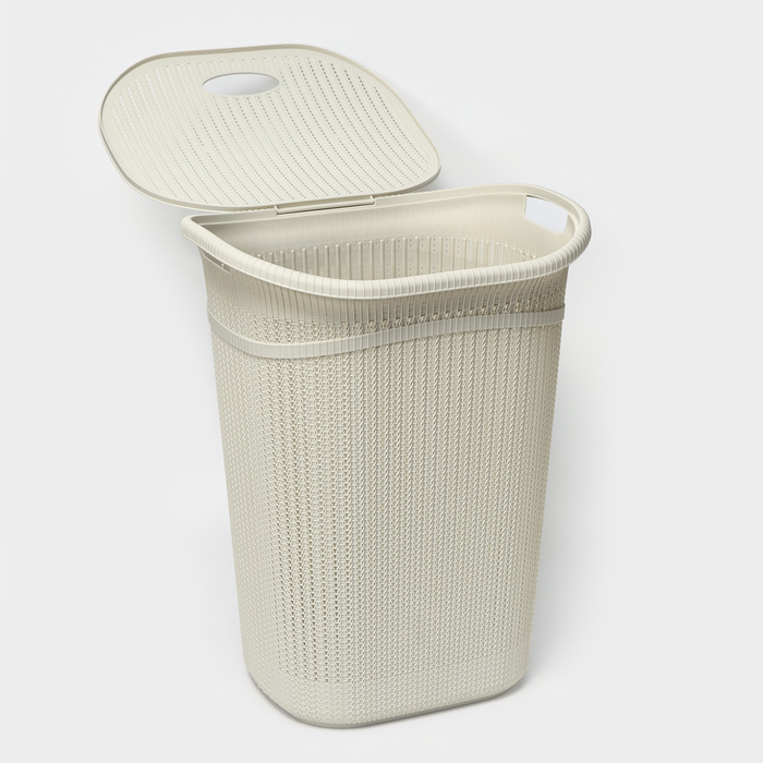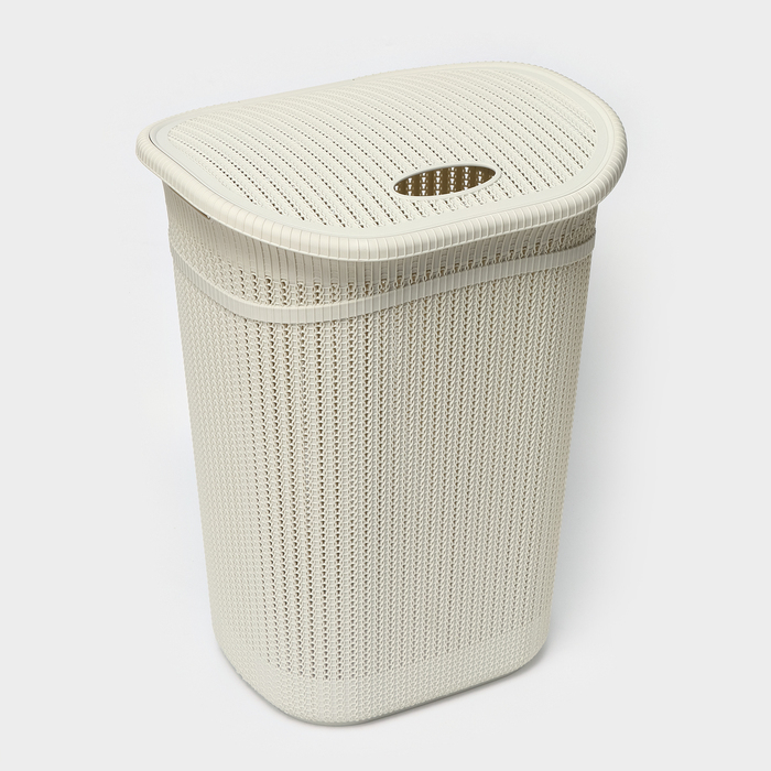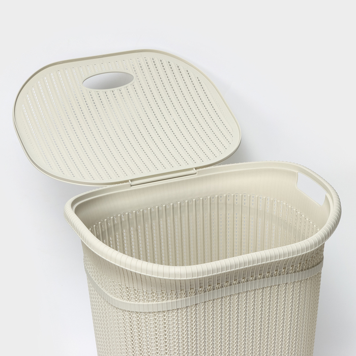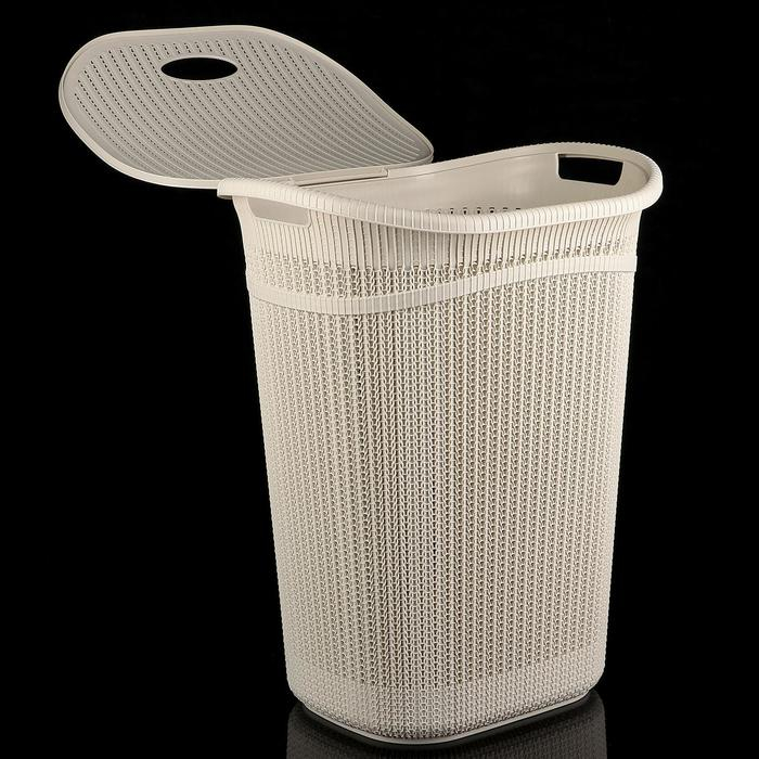 Корзина бельевая с крышкой «Вязание», 55 л, 45×36×57 см, цвет белый ротанг