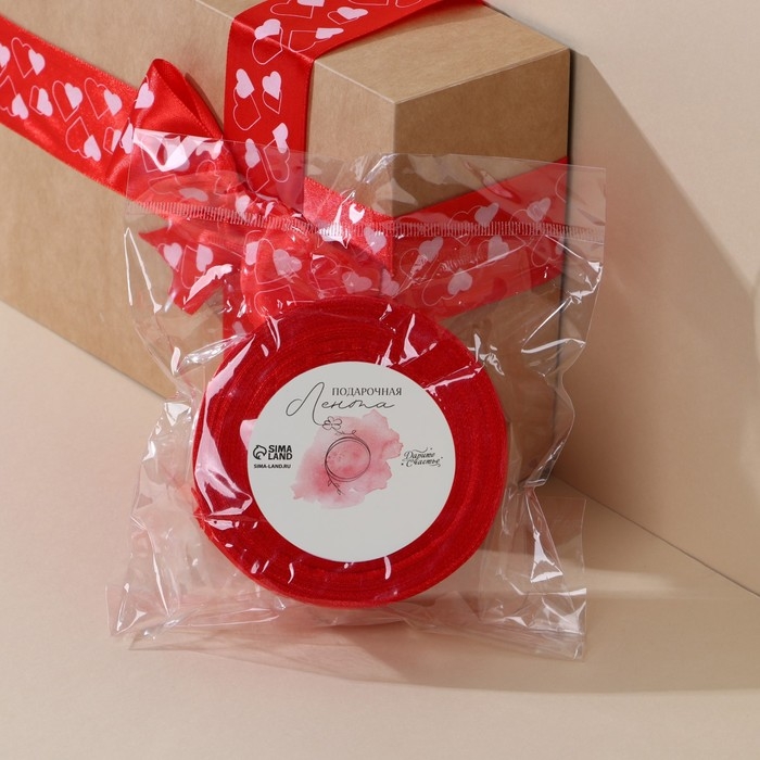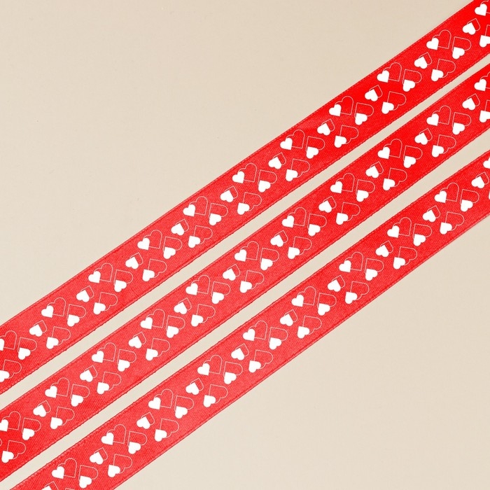 Лента атласная, подарочная упаковка, «Сердечки», красная, 4 см х 22.5 м