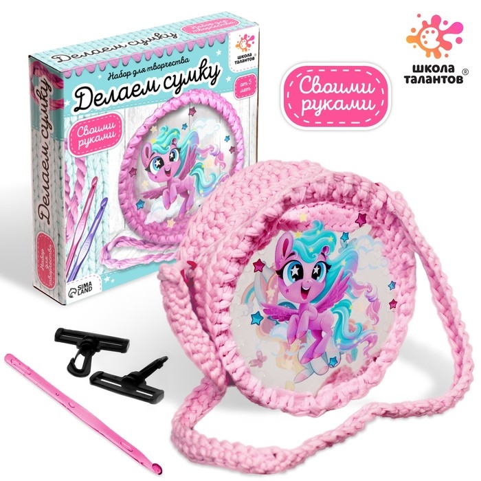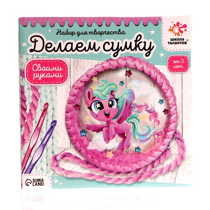 С этим набором ребёнок научится вязать крючком и сделает стильную сумочку своими руками. В наборе есть всё необходимое.