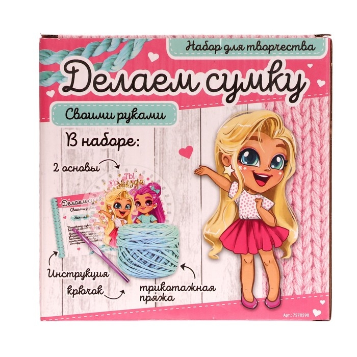С этим набором ребёнок научится вязать крючком и сделает стильную сумочку своими руками. В наборе есть всё необходимое.