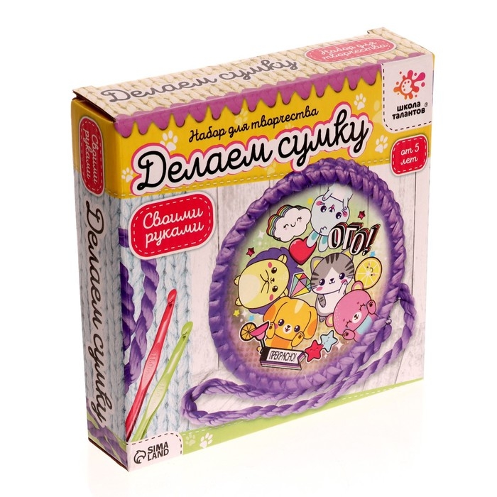 С этим набором ребёнок научится вязать крючком и сделает стильную сумочку своими руками. В наборе есть всё необходимое.
