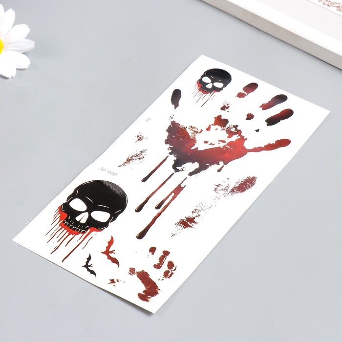 Татуировка на тело цветная "Черепа и следы" 10х21 см