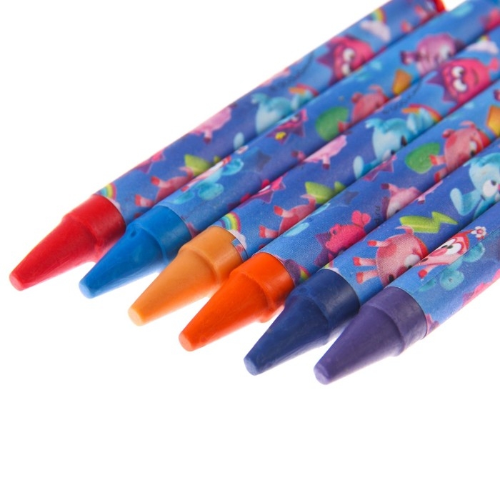 Каждый карандаш завернут в бумажную этикетку с героем мультфильма, что предохраняет от загрязнений, снижает скольжение, увеличивает прочность. Восковые карандаши упакованы в картонную коробку с европодвесом.