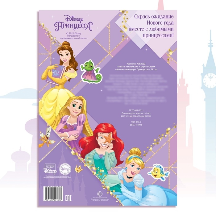 Адвент-календарь — это яркая книга с увлекательными заданиями и наклейками. Разделите ожидание праздника вместе с принцессами Жасмин, Ариэль, Рапунцель, Золушкой и многими другими.