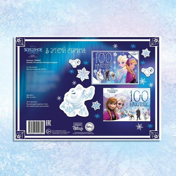 - В альбоме представлено 250 тематических наклеек с красочными изображениями героев мультфильма «Холодное сердце».
