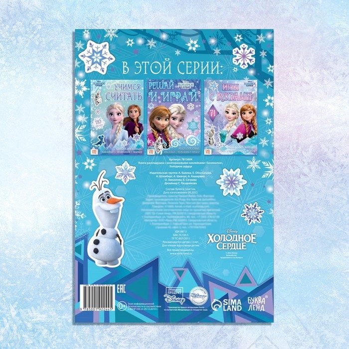 Набор: Книга-раскладушка + многоразовые наклейки + маркер «Холодное сердце. Занималки», 17 × 24 см, Дисней