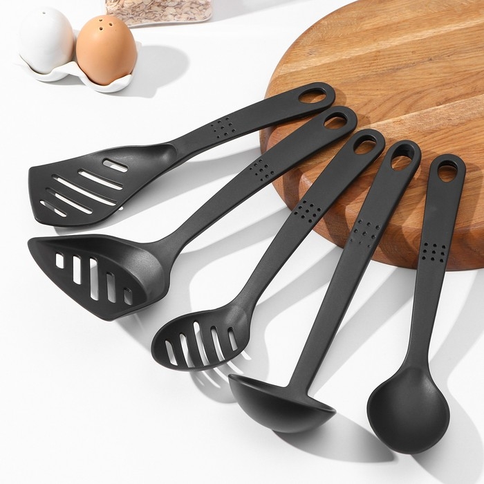 Набор кухонных принадлежностей Доляна «Антрацитовый блеск», 5 предметов, цвет чёрный