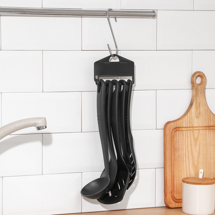 Набор кухонных принадлежностей Доляна «Лиам», 7 предметов, 33×12,5×12,5 см, цвет чёрный