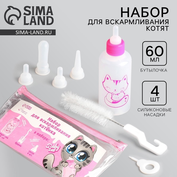 Набор предназначен для искусственного вскармливания новорождённых котят, может применяться для кормления больных животных.