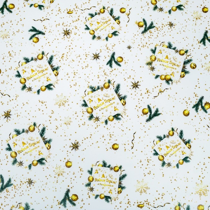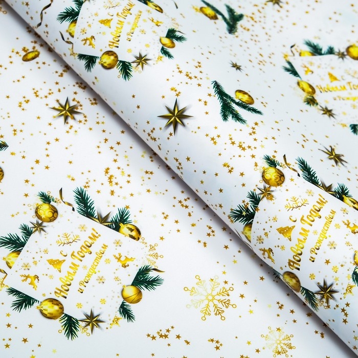 Новый год. Бумага упаковочная глянцевая "Венки на золотом!",1 лист, 70 х 100 см