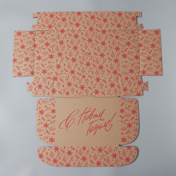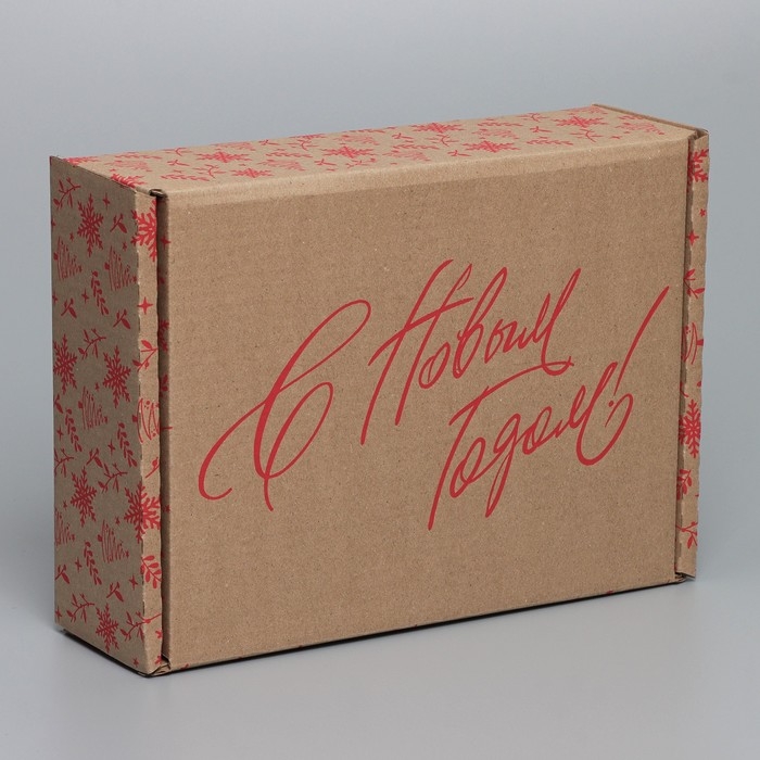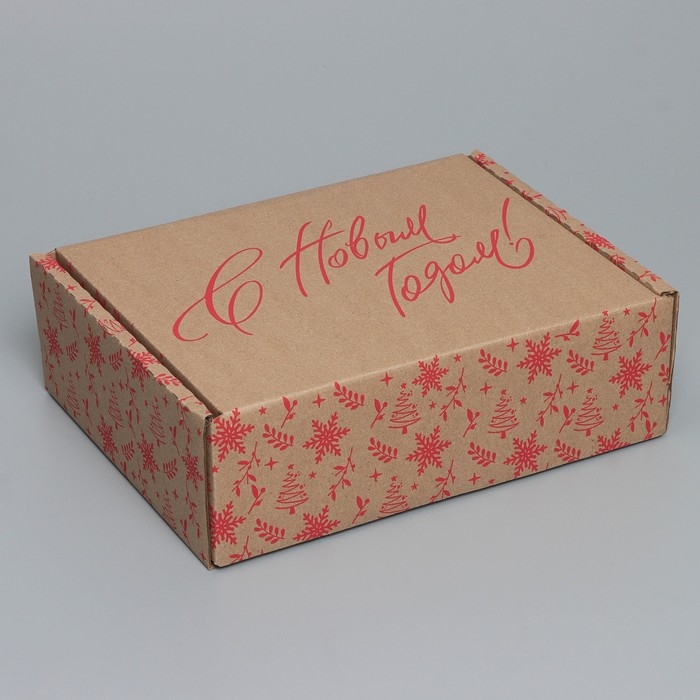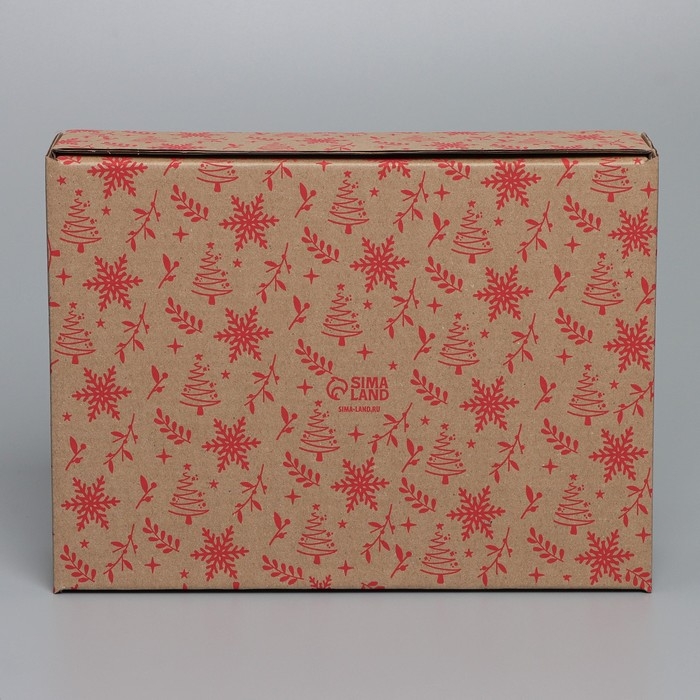 Коробка новогодняя складная «С новым годом», бурый, 27 х 21 х 9 см, Новый год