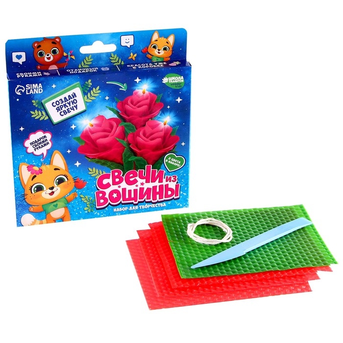 С этим набором ребёнок сможет создать свечу-букет из вощины!