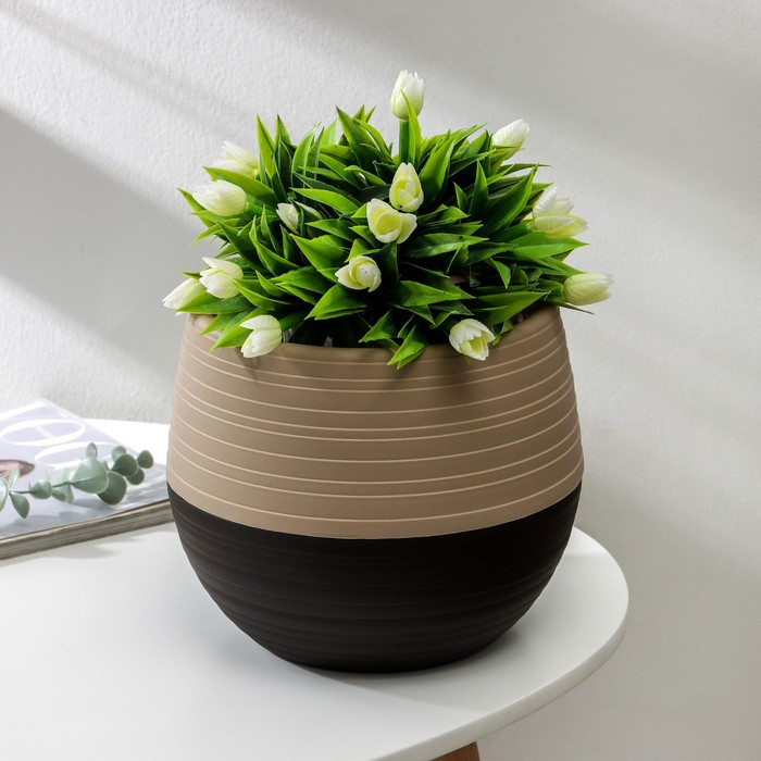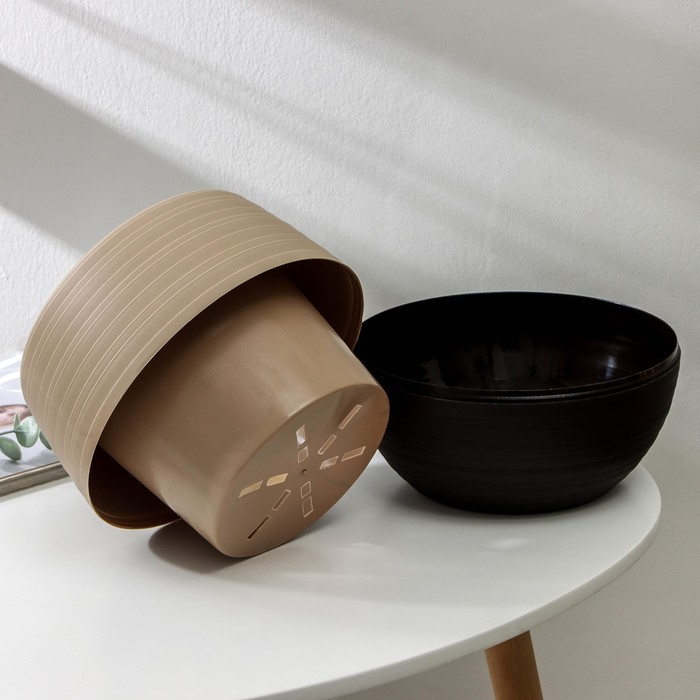 Горшок для цветов с поддоном «Дуэт», 2.5 л, цвет шоколадный-кофе с молоком