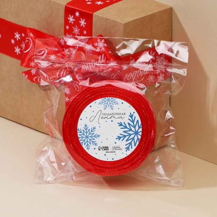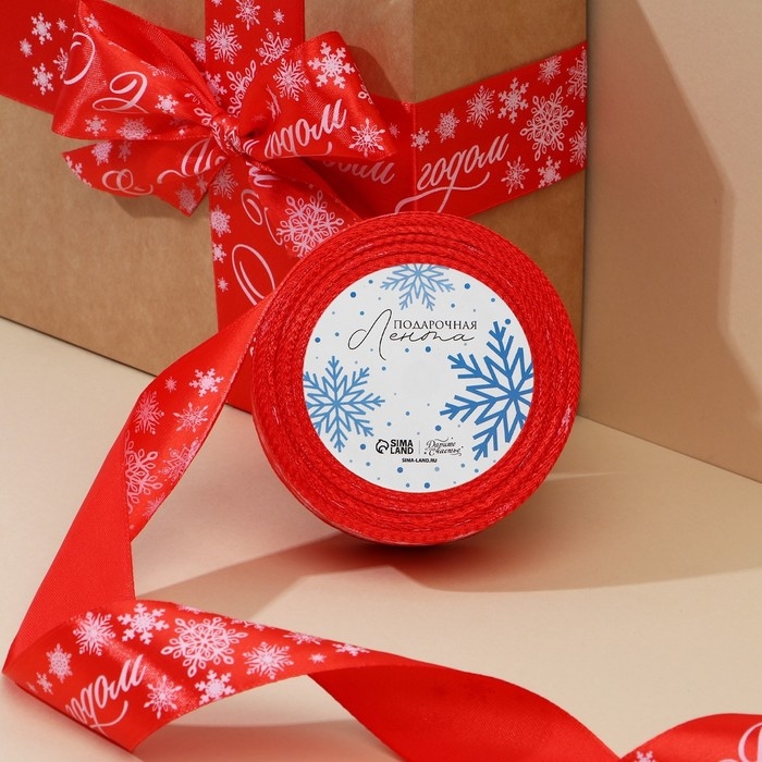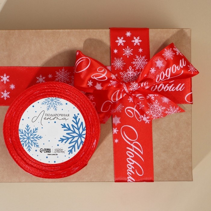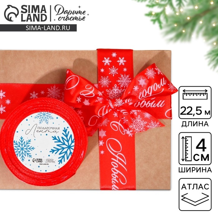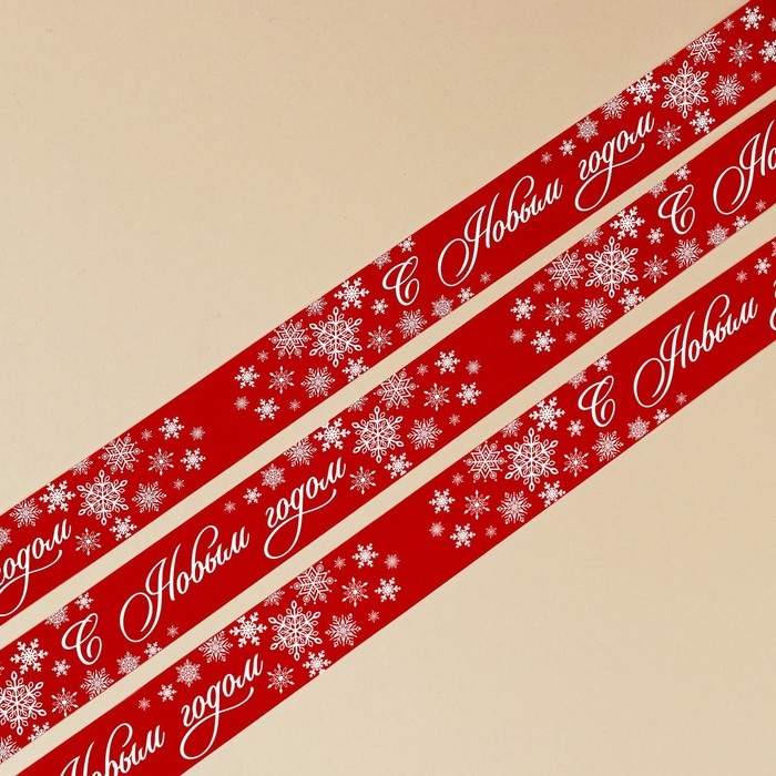 Лента атласная «С Новым годом», красная, 4 см х 22.5 м
