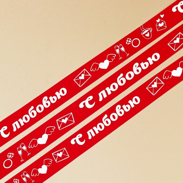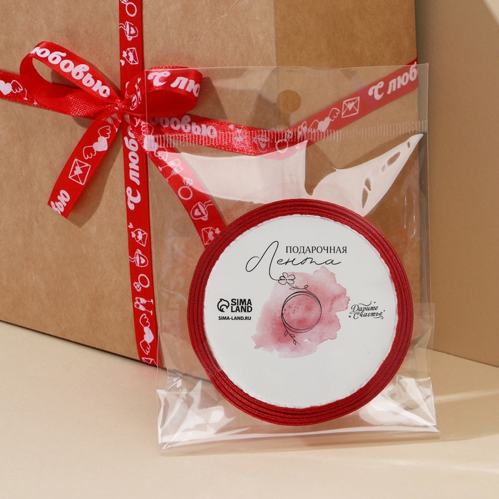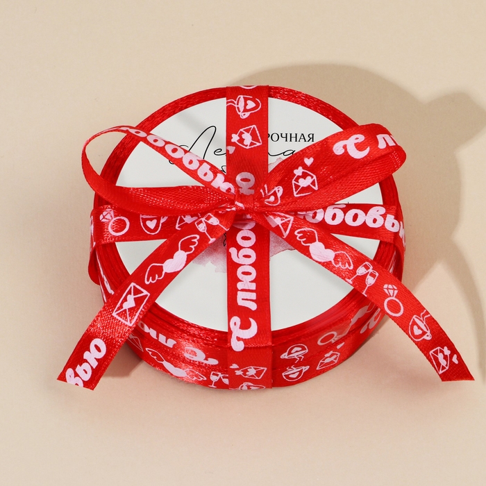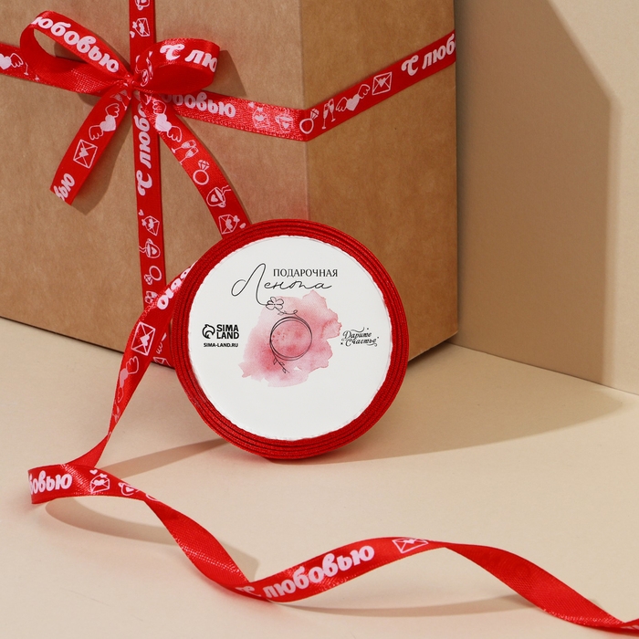 Лента атласная, подарочная упаковка, «С любовью», красная, 1 см х 5 м