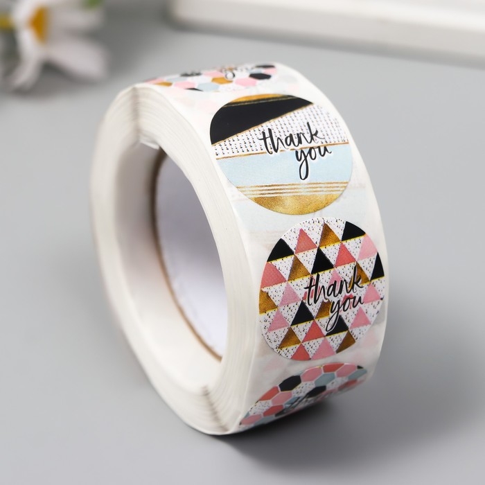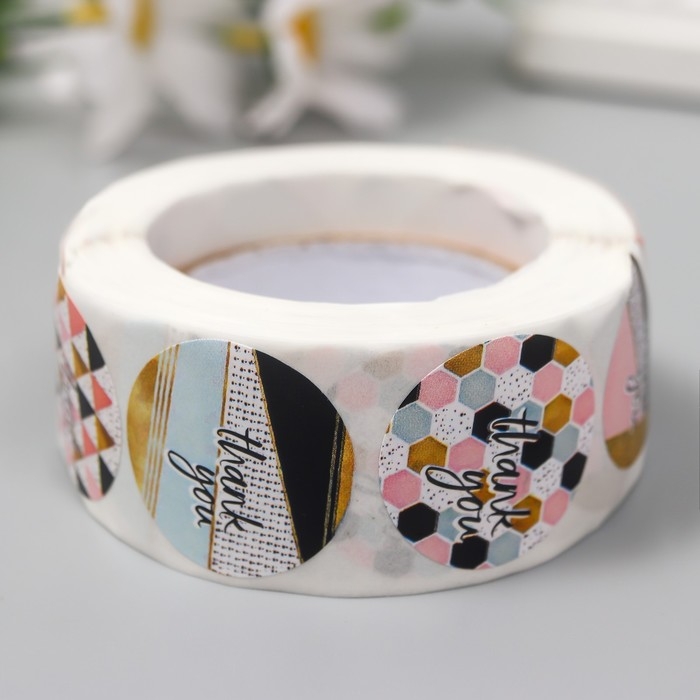 Наклейка бумага "Геометрия" d=2,5 см 500 шт в рулоне 3х6,5х6,5 см