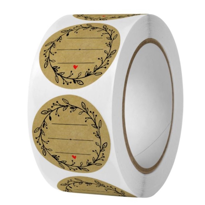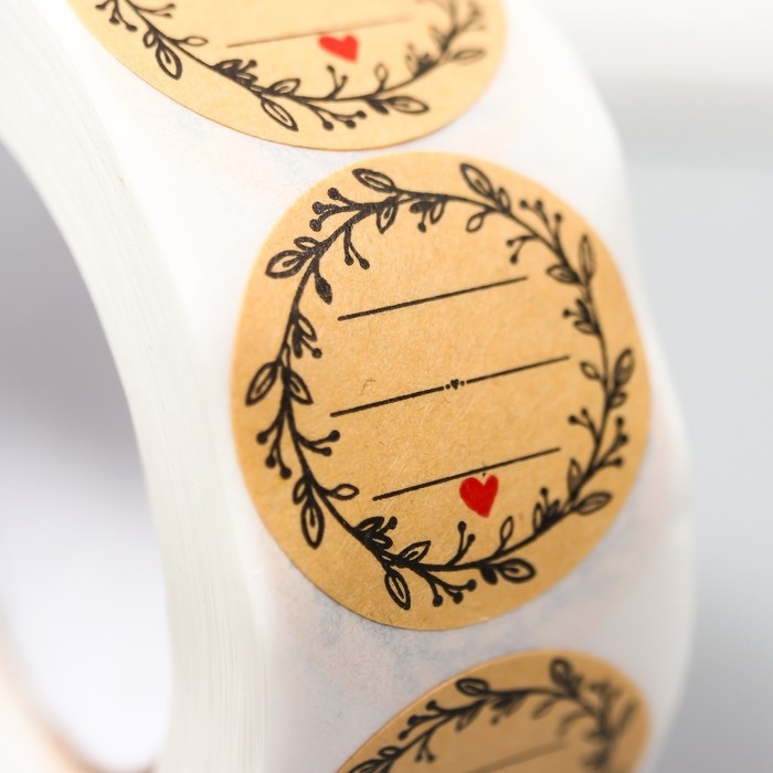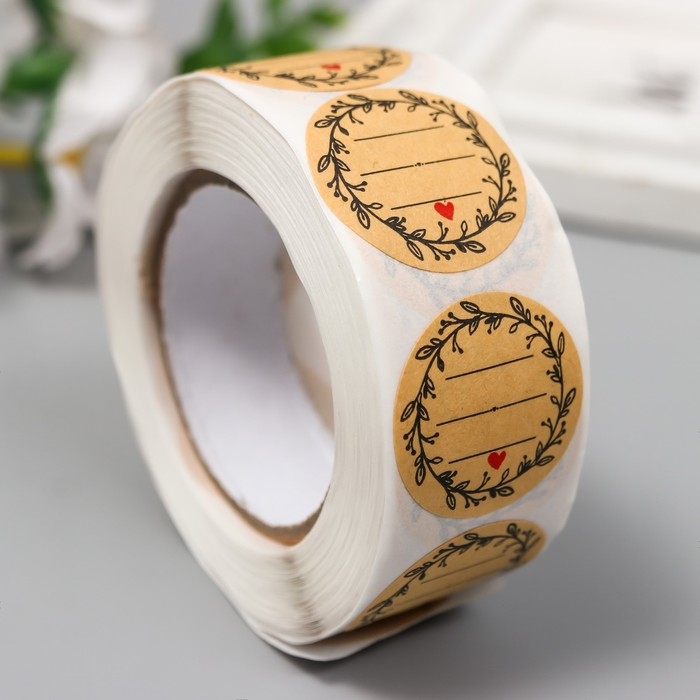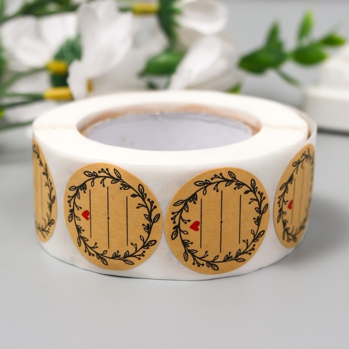 Наклейка бумага "Веточка и сердечко" d=2,5 см 500 шт в рулоне 3х6,5х6,5 см
