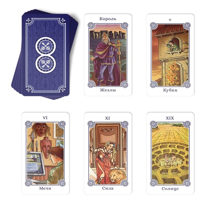Толковать значения карт можно опираясь не только на классические смыслы, но и на ассоциации, которые вызывает у вас карта. Иногда предсказание проигрывается самой картинкой в буквальном смысле. В трактовке каждой карты есть значение «Ключ» — это совет, который даёт карта, и «Дверь» — это определённая ситуация.