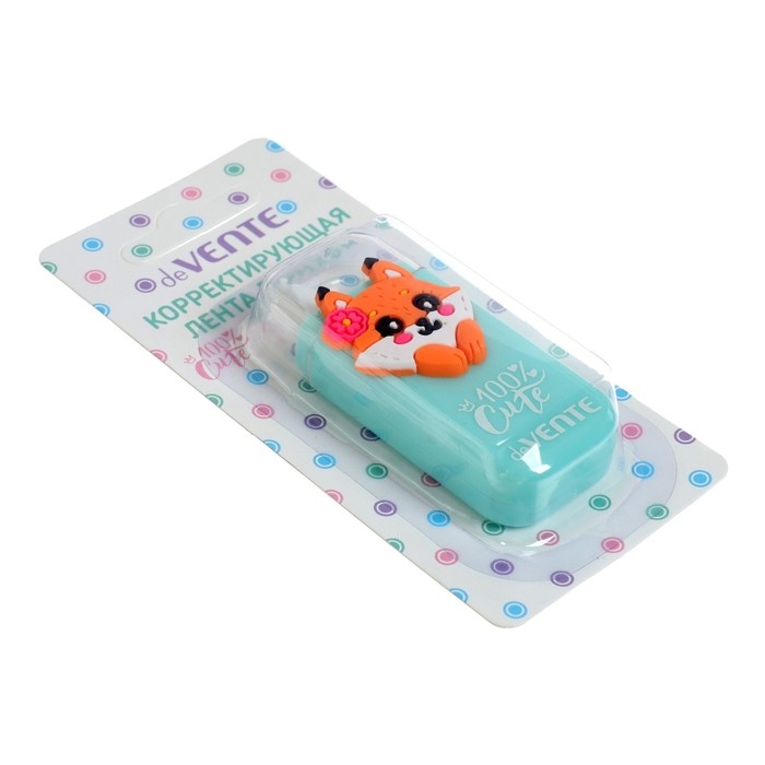 Корректирующая лента "deVENTE. 100% Cute. Fox" 5 ммx06 м, бирюзовый непрозрачный корпус, фронтальный аппликатор, в картонном блистере.