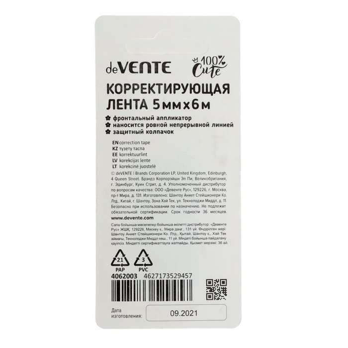 Корректирующая лента 5 мм х 6 м, deVENTE 100% Cute. Fox фронт аппликатор, в блистере