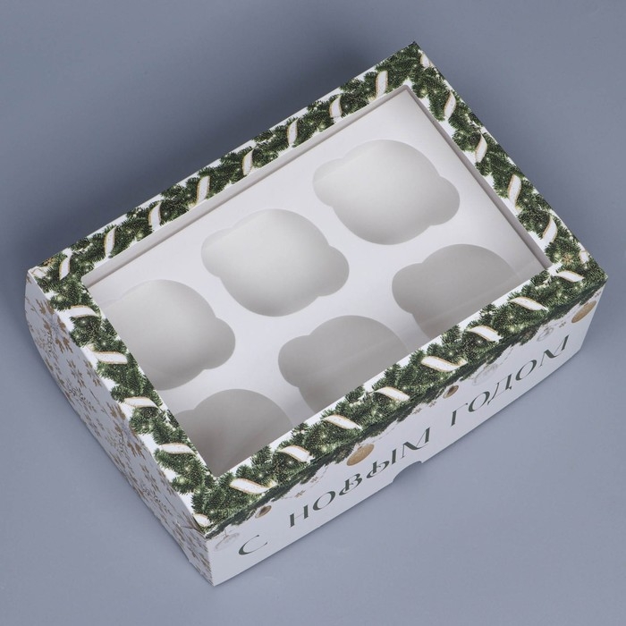 Коробка для капкейка «Снежные игрушки», 23 х 16 х 10 см, Новый год