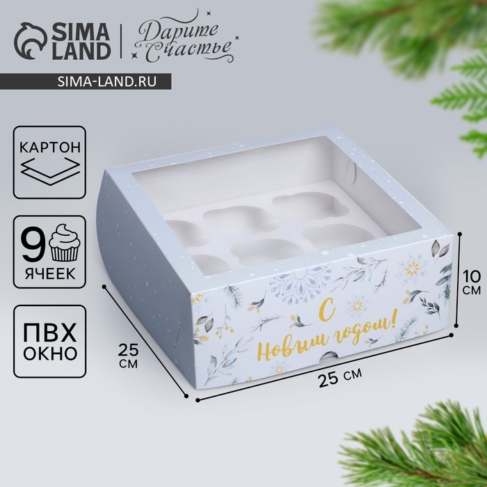 Коробка складная на 9 капкейков с окном «Паттерн светлый», 25 х 25 х 10 см, Новый год