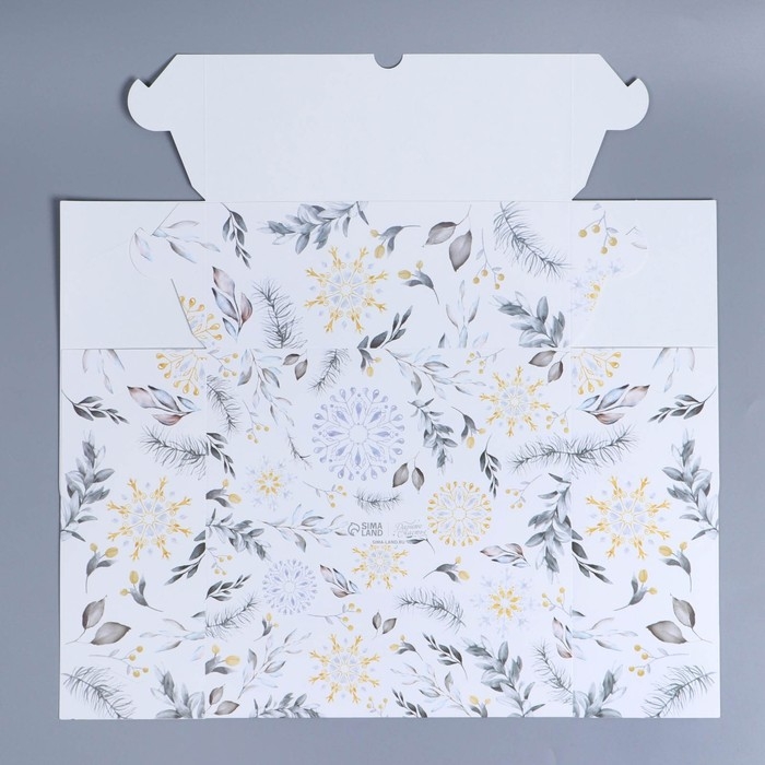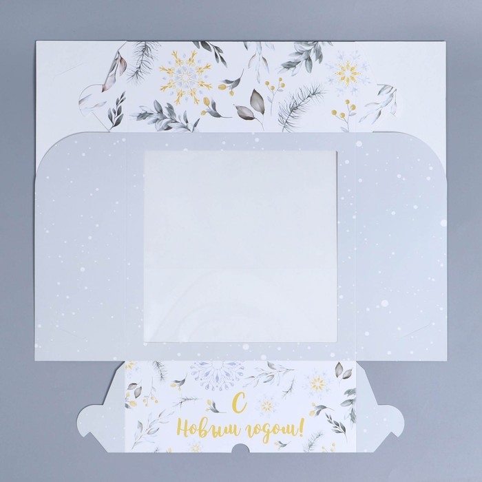 Коробка складная на 6 капкейков с окном «Паттерн снежинки», 25 х 17 х 10 см, Новый год