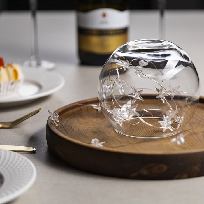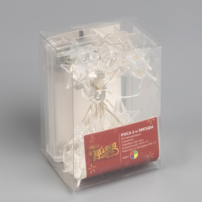 Гирлянда «Нить» 2 м роса с насадками «Звезда», IP20, серебристая нить, 20 LED, 2 режима, батарейки ААх2 (нет в комплекте), свечение мульти