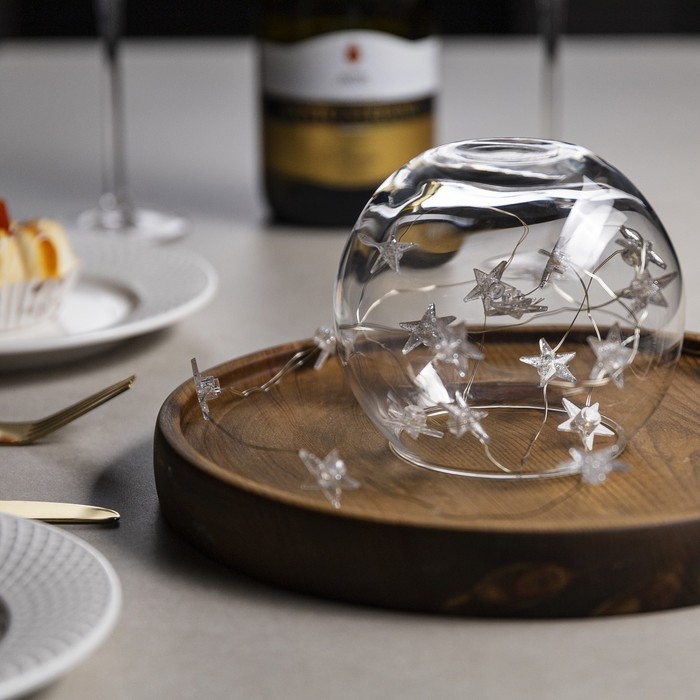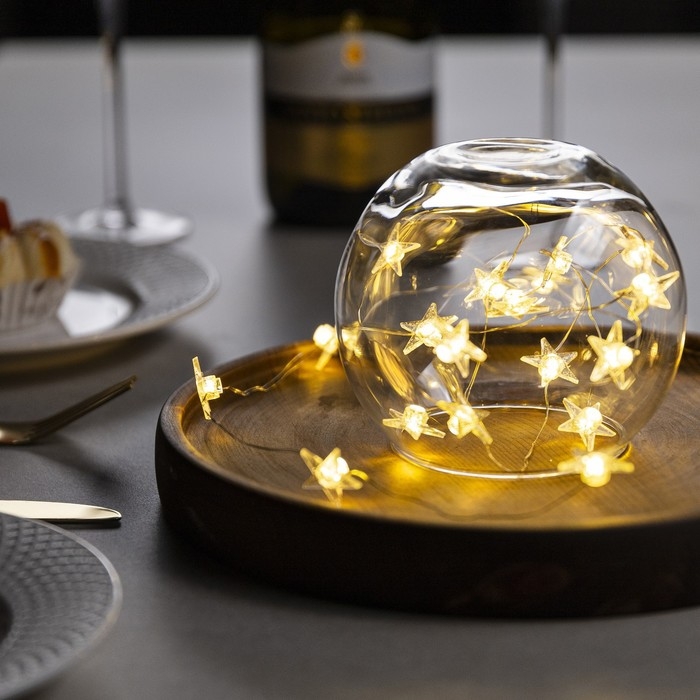 Гирлянда «Нить» 2 м роса с насадками «Снежная звезда», IP20, серебристая нить, 20 LED, 2 режима, батарейки ААх2 (нет в комплекте), свечение тёплое белое