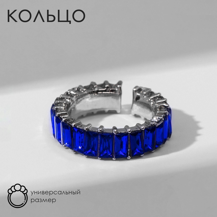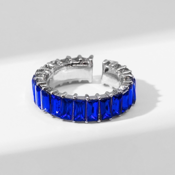 Кольцо «Тренд» параллель, цвет синий в серебре, безразмерное (от 17 размера)