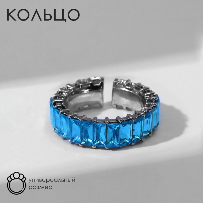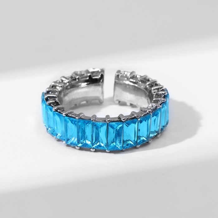 Кольцо «Тренд» параллель, цвет голубой в серебре, безразмерное (от 17 размера)