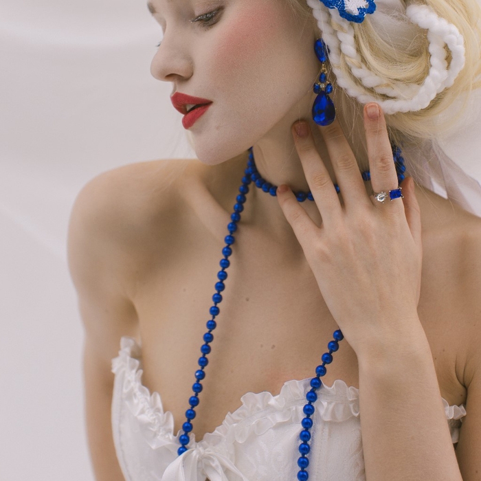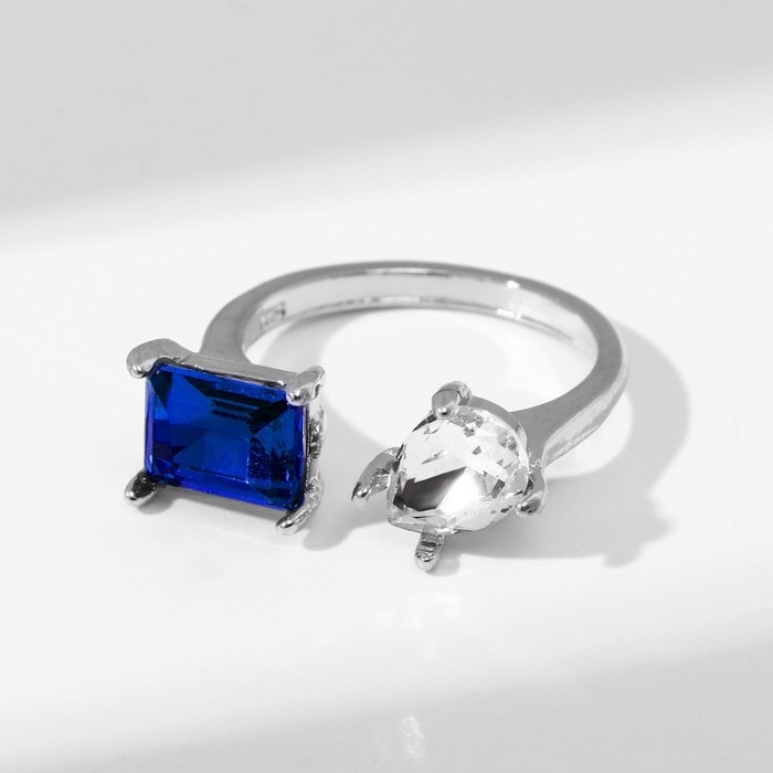 Кольцо «Драгоценность» фигуры, цвет бело-синий в серебре, безразмерное