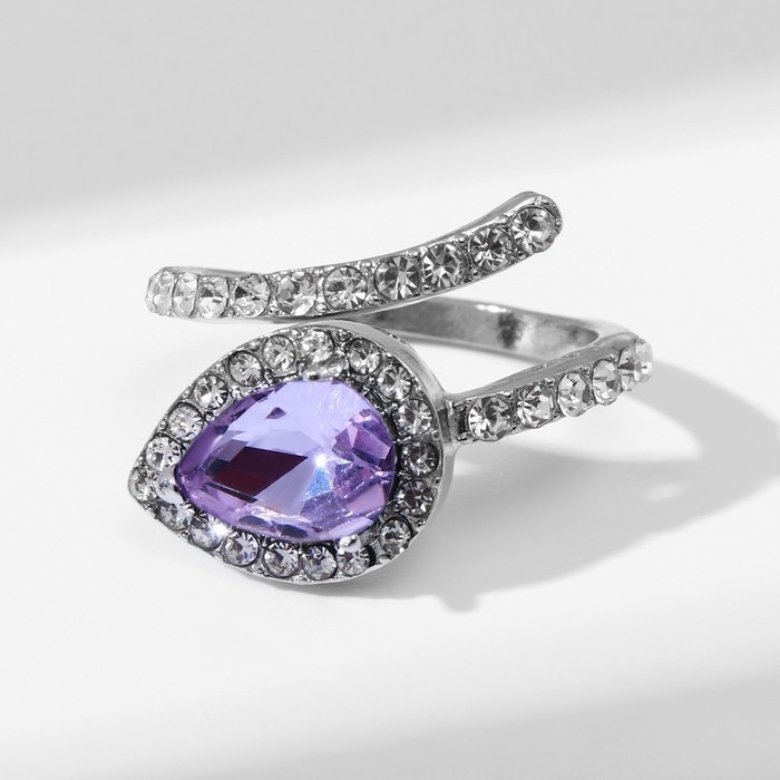 Кольцо «Росток» стебель, цвет бело-фиолетовый в серебре, безразмерное