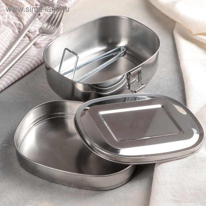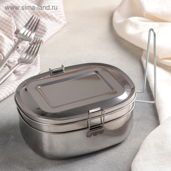 Контейнер для еды из нержавеющей стали с держателем, 17×13, 2 уровня