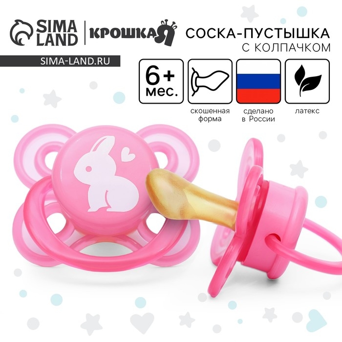 Соска - пустышка латексная ортодонтическая «Зайчик», от 6 мес., цвет розовый